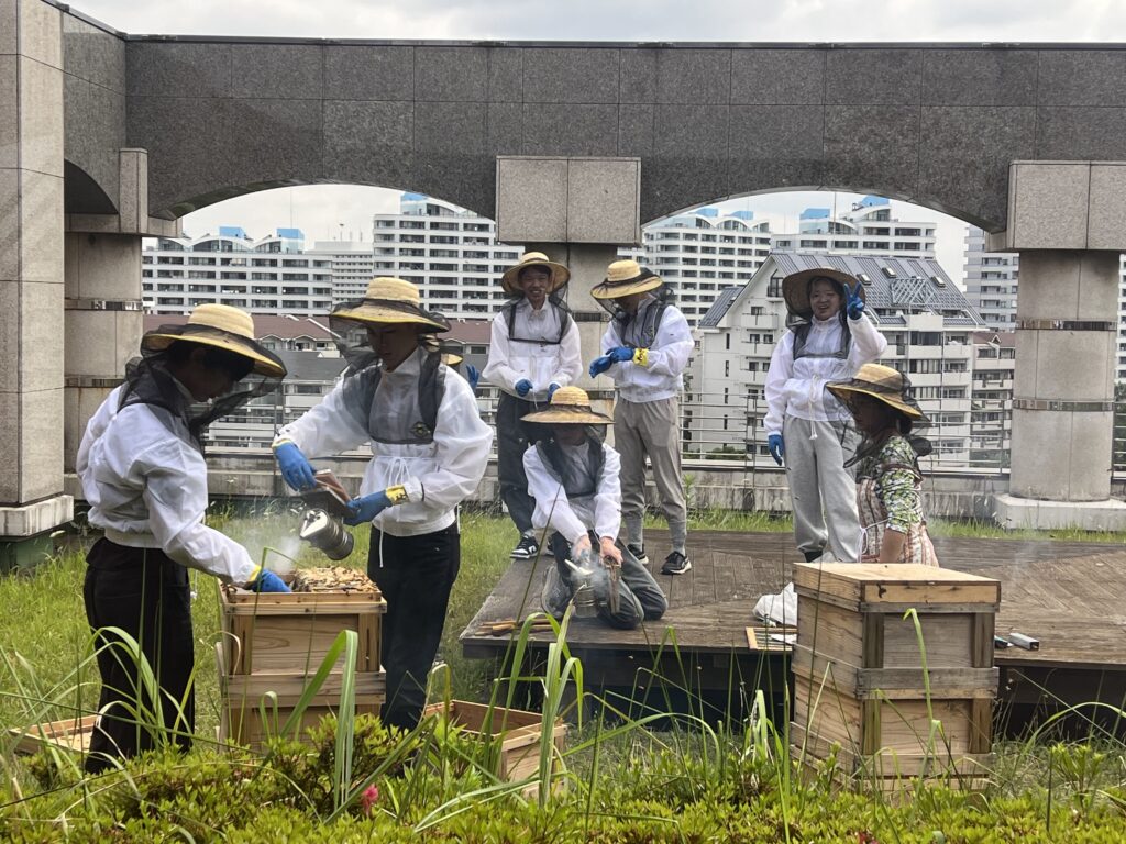 「一次産業がない浦安市に『浦安産』の名物を作りたい」という学生の想いからスタートした「うらやすハニープロジェクト®︎」。明海大学のホスピタリティ・ツーリズム学部の学生たちによって2022年3月に始動し、現在も浦安キャンパスの屋上で都市型養蜂に取り組んでいます。