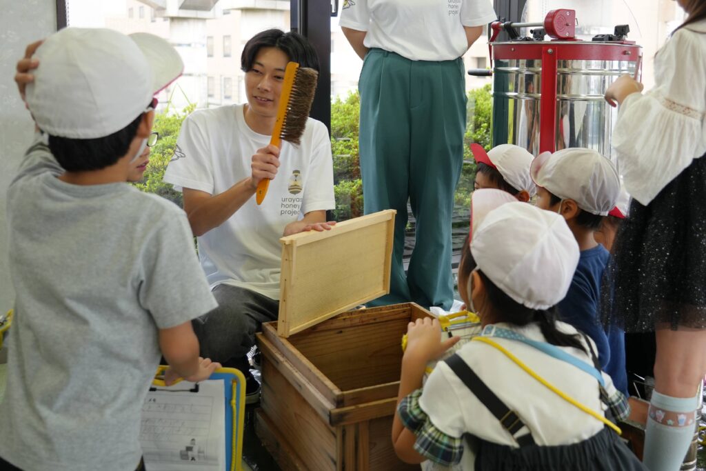「体験授業でおみやげにハチミツの瓶を渡したのですが、学園祭の時にその瓶を持ってハチミツを買いに来た子がいました。嬉しくて泣きそうになりましたね」と、緑川さん。