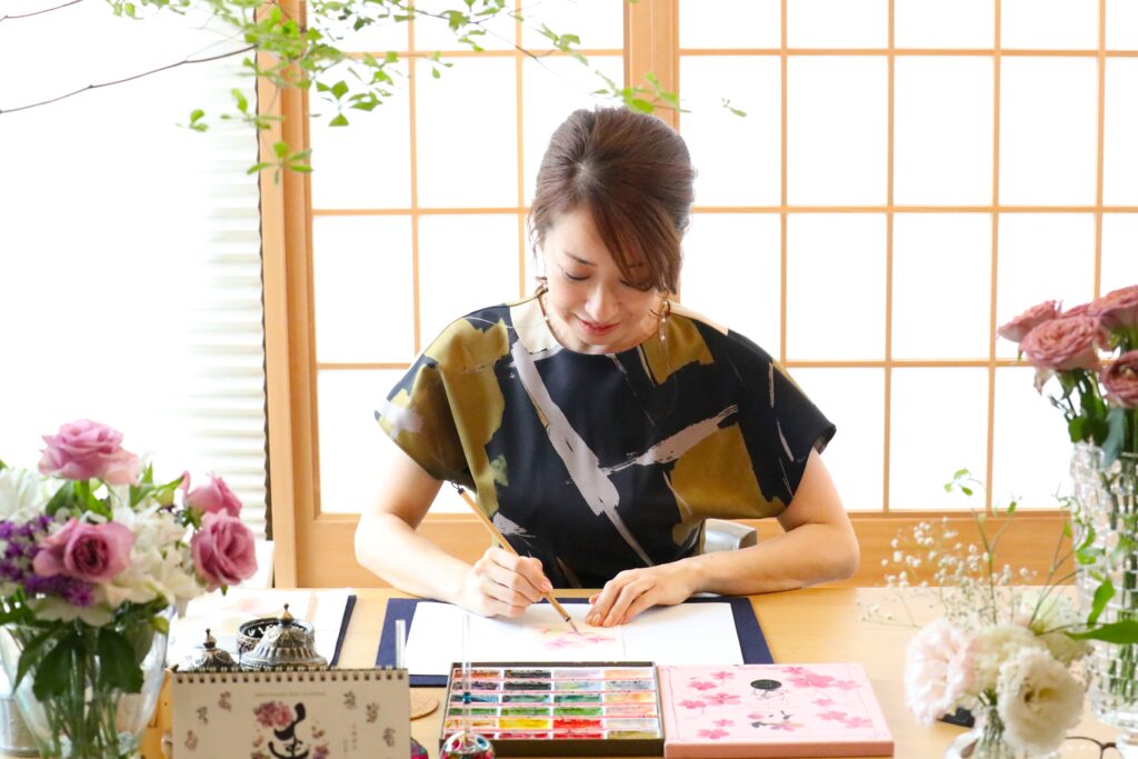 「日本の素敵な言葉を絵と一緒に楽しんでいただきたい。作品を飾っただけでその場が明るくなったり、さりげなく想いを伝えたり、日常に寄り添ってくれるといいなと思っています」
