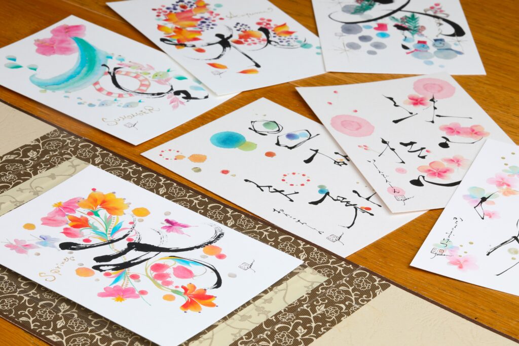 アトリエでは永田さんの体験レッスンを開催するほか、講師の育成にも力をいれています。また、年賀状やカレンダーのデザインを請け負うこともあり、全国の有名店で作品に出会うことも。